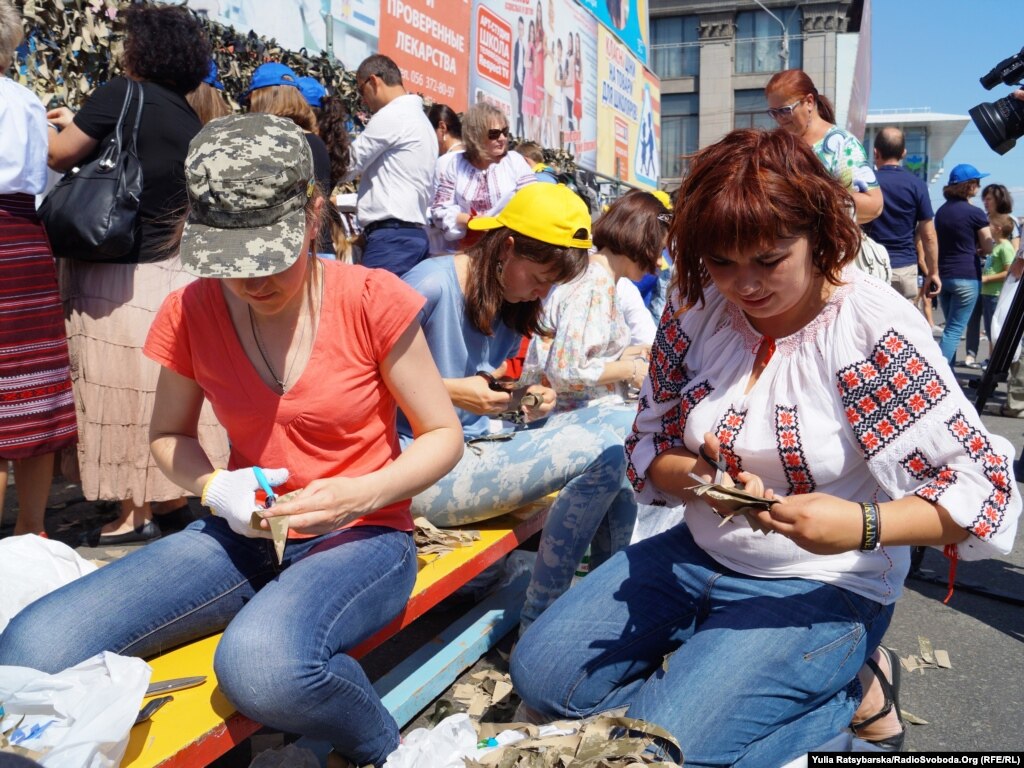 У понеділок, 24 серпня, у Дніпропетровську з нагоди Дня Незалежності просто неба жителі міста сплели рекордну маскувальну сітку довжиною у сто метрів і шириною у шість.
